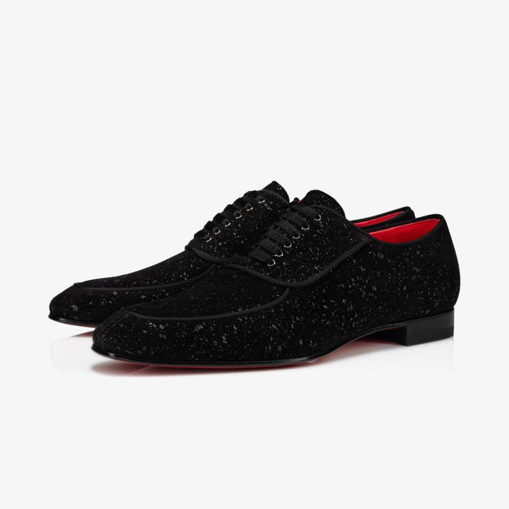 This refined Oxford shoe is inspired by the classic low-cut waistcoat of a traditional three-piece suit, offering a retro yet elegant appeal. Featuring a suede base with a constellation-like effect, it is finished with a tonal grosgrain ribbon trim. Designed for slimmer feet and insteps, this model exudes sophistication and timeless style.Upper: 100% suede