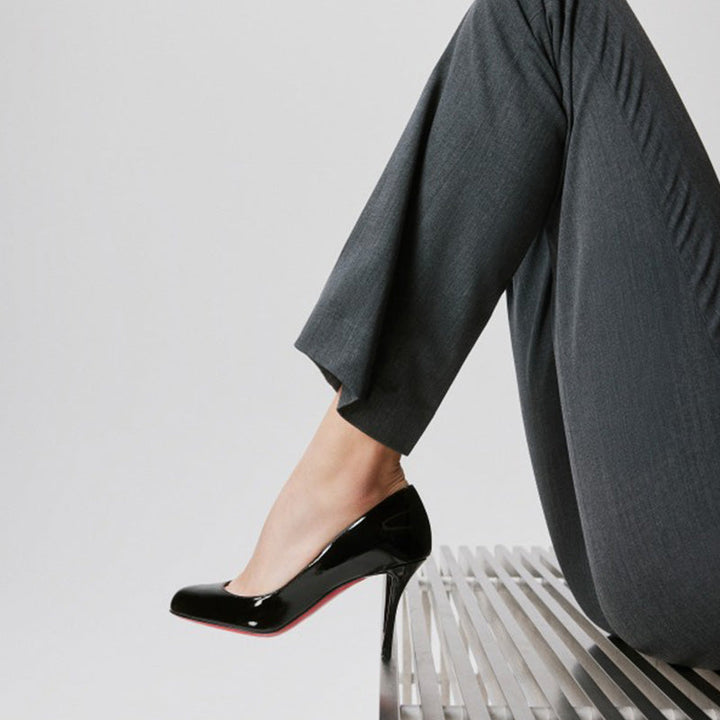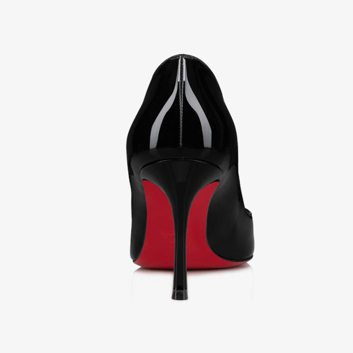 This timeless pump exudes elegance with its sleek silhouette and refined details. Made entirely from glossy black patent calfskin, it features a rounded toe, bold low-cut neckline, and subtle finishing touches. The 80 mm stiletto heel adds just the right amount of height for a polished, sophisticated look.