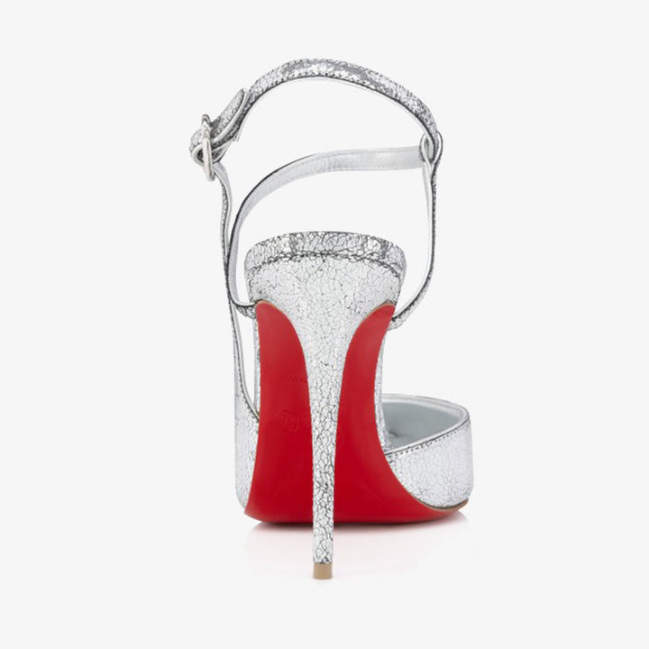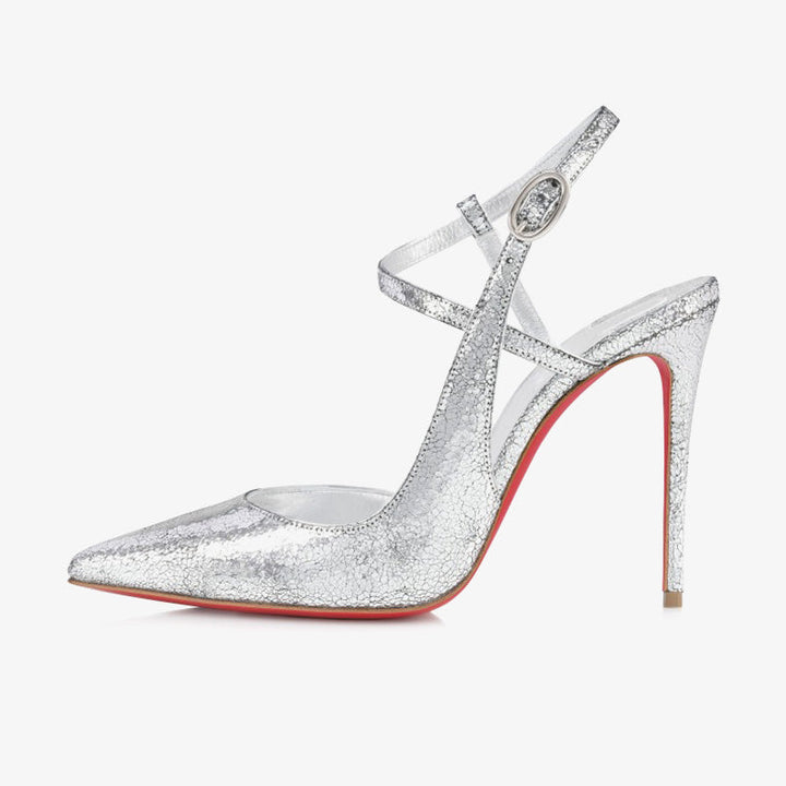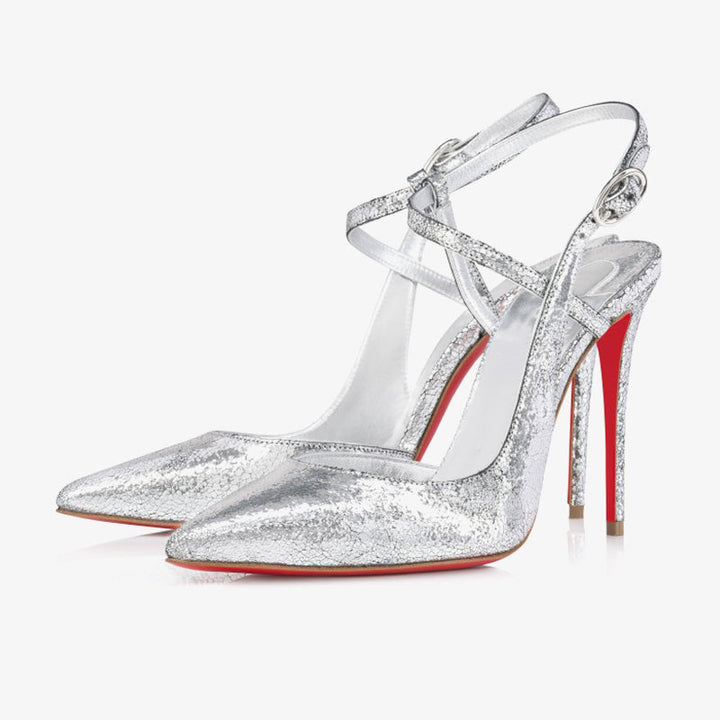Silver Pointed-Toe Stiletto Heels with Ankle Strap