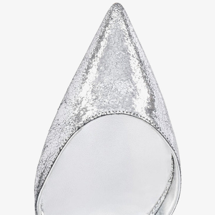 For those who appreciate a sleek, pointed silhouette with added ankle support, this silver calf leather pair is the perfect choice. Balanced on a sharp 100 mm stiletto heel, the design offers both elegance and stability, making it a standout addition to any refined wardrobe.