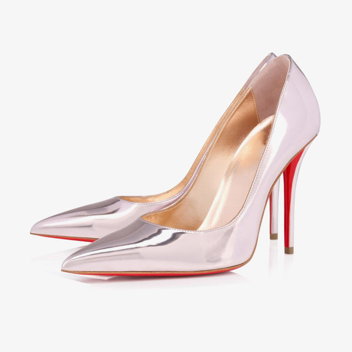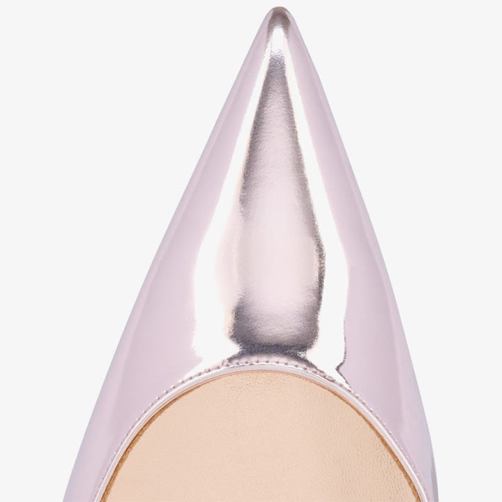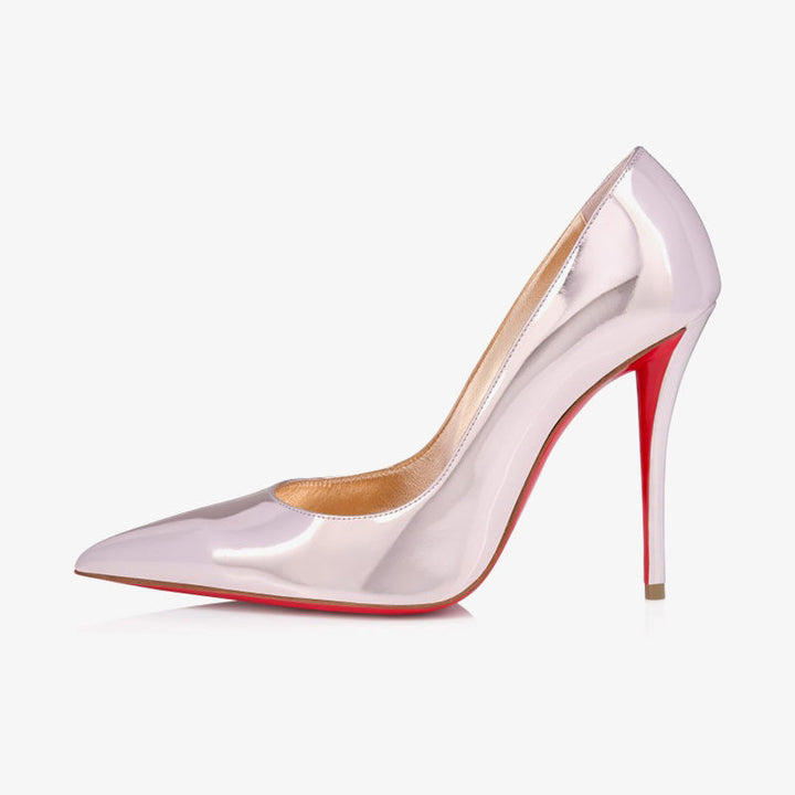 The tapered silhouette of this pump exudes sophistication. Set on a 100mm stiletto heel that reveals the red of the iconic sole, this model is crafted from Vintage Rose laminated calf leather. With its elegant vamp that delicately reveals the foot, it features the new 'Everlasting Red Sole,' an innovative coating technique that ensures lasting durability and vibrant red for the signature sole.
