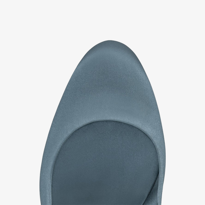 A timeless classic, this pump features a rounded toe and a daring low-cut vamp, enhanced by a slim strap that fastens with a press-stud. Crafted in luxurious navy crepe satin, it reveals the foot with an elegant touch. Set on an 80 mm stiletto heel, this model exudes urban sophistication and sleek style.