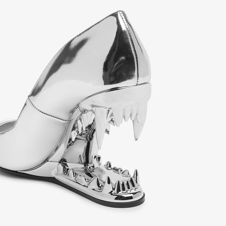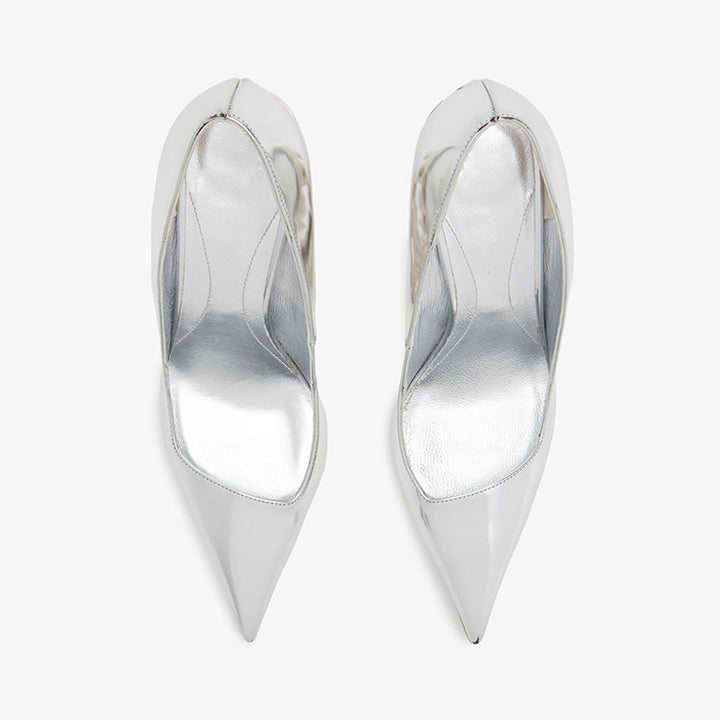All-Silver Sculpted Heel Pumps