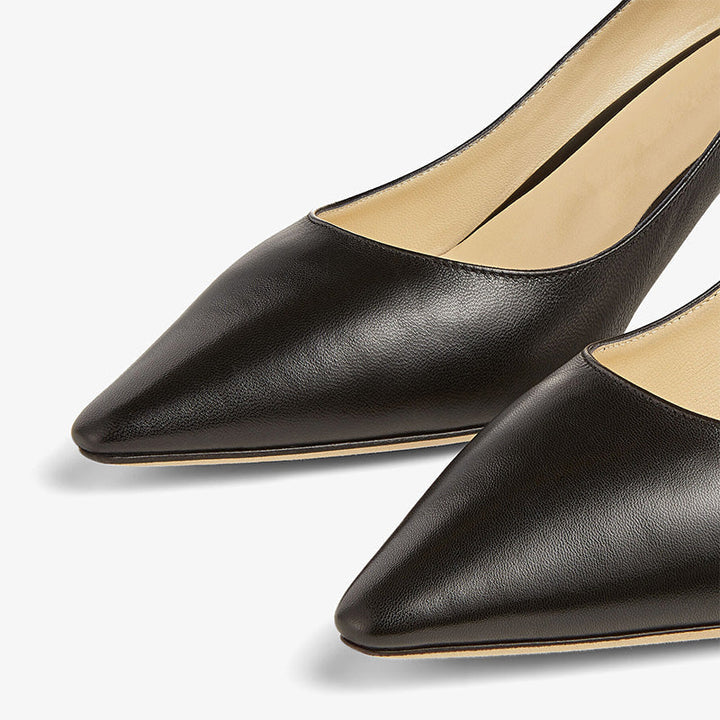 A sophisticated update to a timeless silhouette, these pumps feature a softened pointed toe and an elegantly slim heel. Crafted from smooth black calf leather, they are lined with supple leather and finished with a sleek leather sole, offering both comfort and enduring style.The heel height of this pair is 60mm.