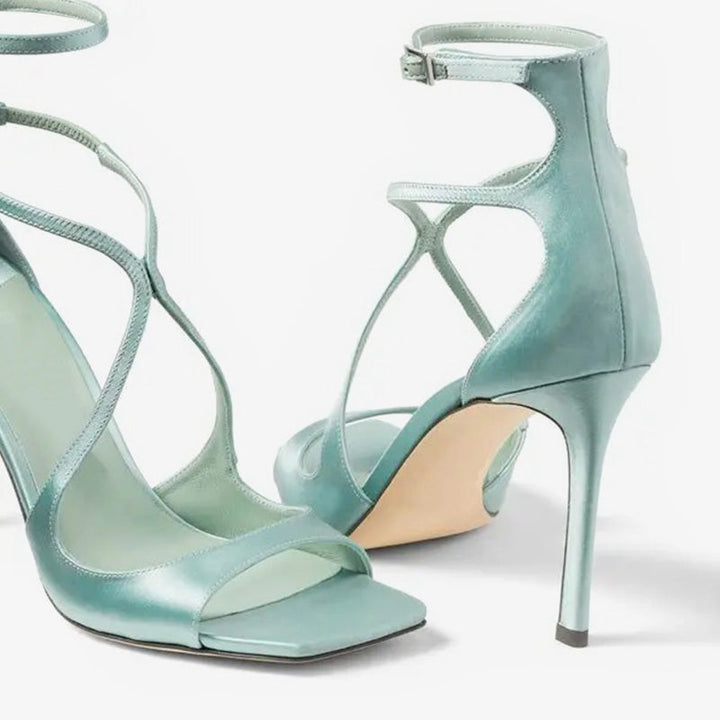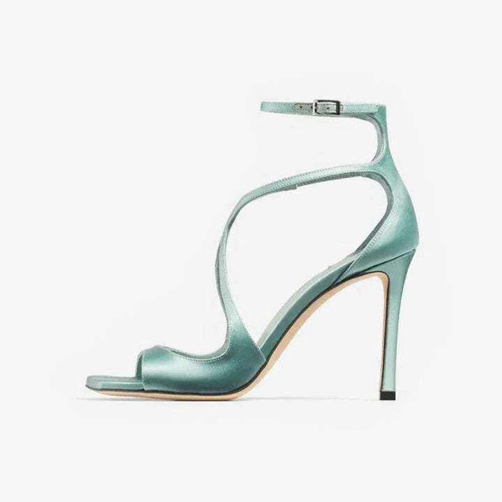 Green Satin Sandals with Curved Straps