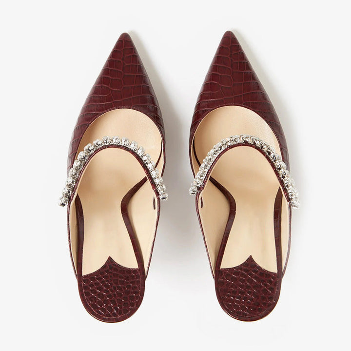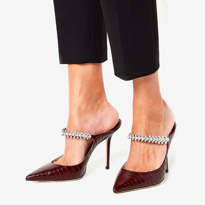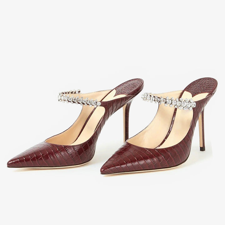 Crafted entirely from smooth leather, these sleek mules feature a pointed toe, 100mm stiletto heel, and a minimalist slip-on design that blends elegance with modern sophistication.