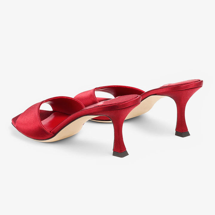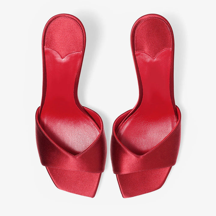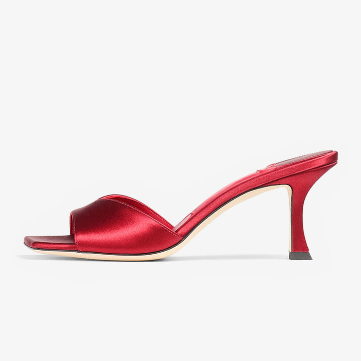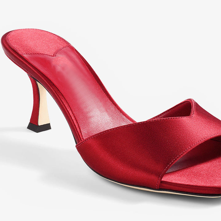 Red Curved-Heel Satin Sandals